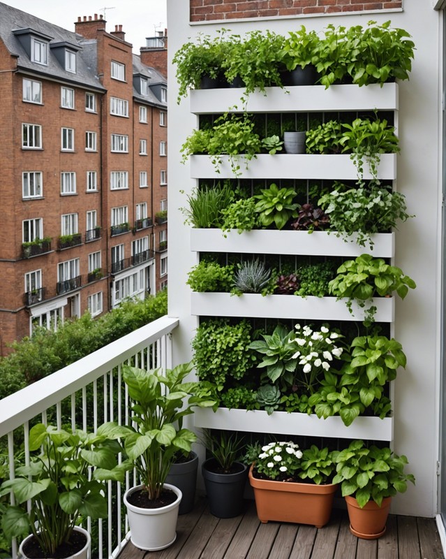 By arranging them vertically, you can maximize vertical space and create a lush green wall that adds life to your balcony.
