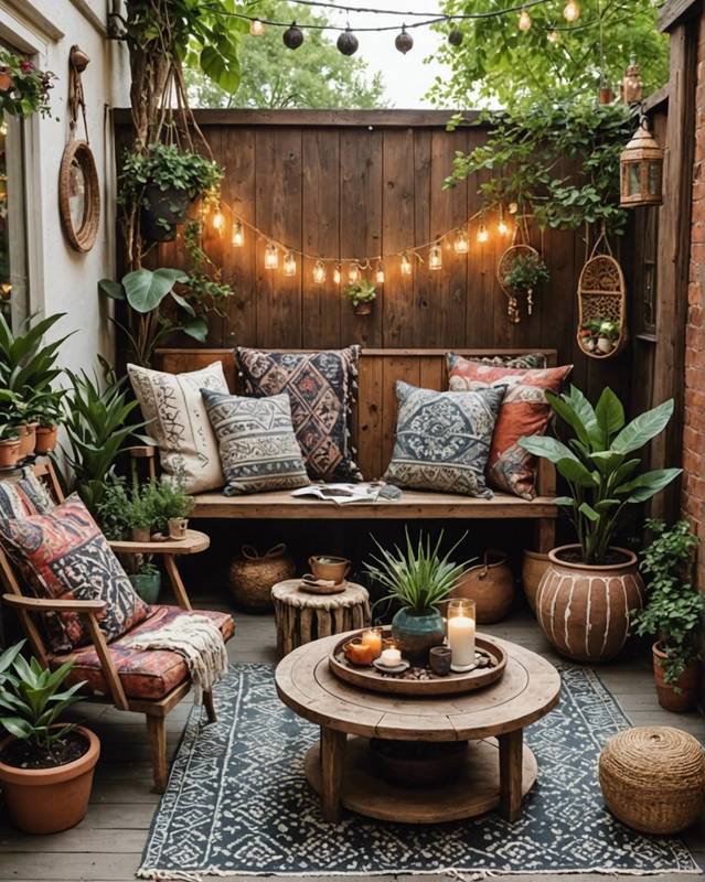 Adorn your seating area with plush cushions and throws in bohemian prints. Add a touch of exoticism with Moroccan lanterns and dream catchers.