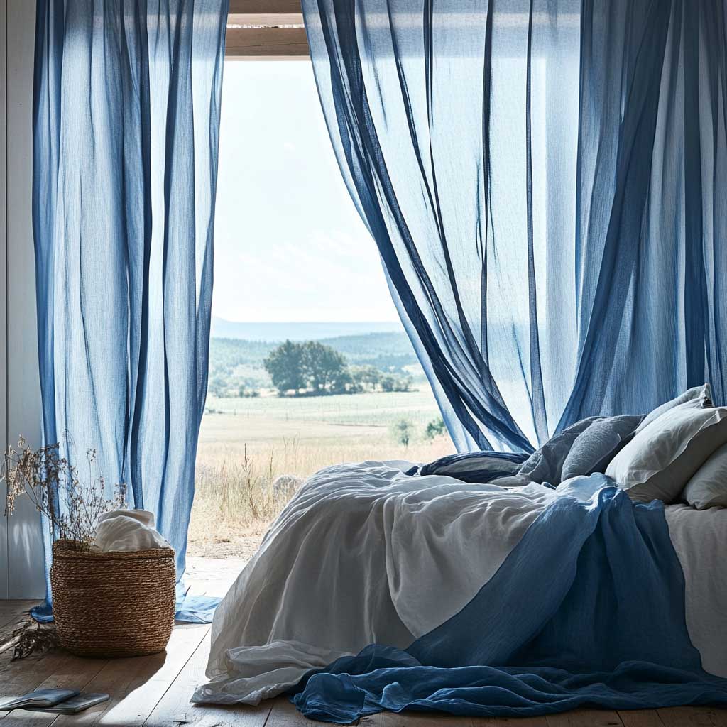 While soft sky blue sheer curtains create a light and airy atmosphere, deep navy velvet drapes offer a striking contrast that brings richness and depth to a room. I love how they add a luxurious texture and timeless elegance. Here are three reasons to ponder them: