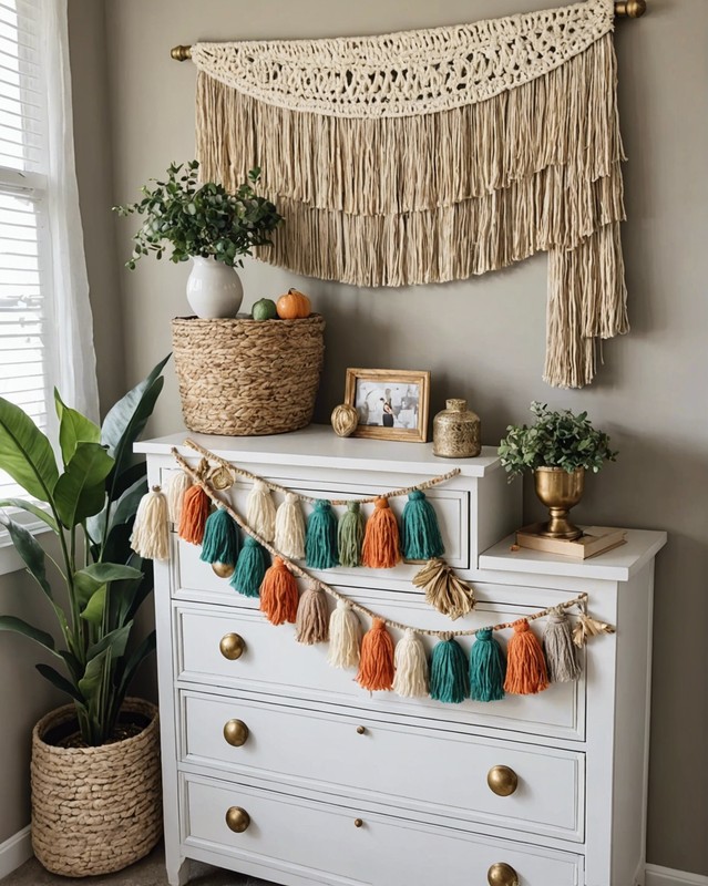 For a boho dresser, consider adding a fringed valance or runner.