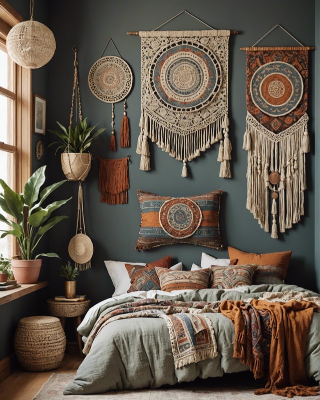 Accessorize with earthy elements like woven baskets and dream catchers to complete the bohemian aesthetic and transport your bedroom to a mystical realm.