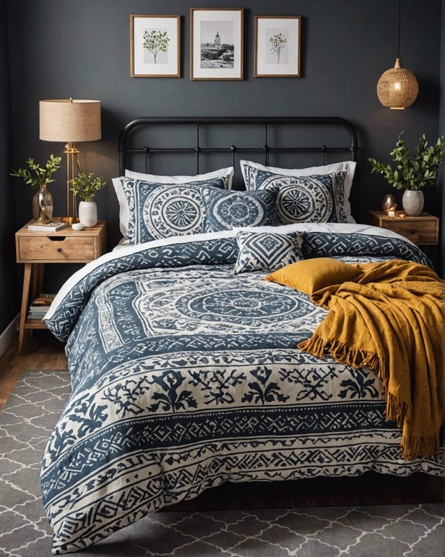 Abstract patterns, floral prints, and ethnic motifs are all popular choices for bohemian bedrooms.