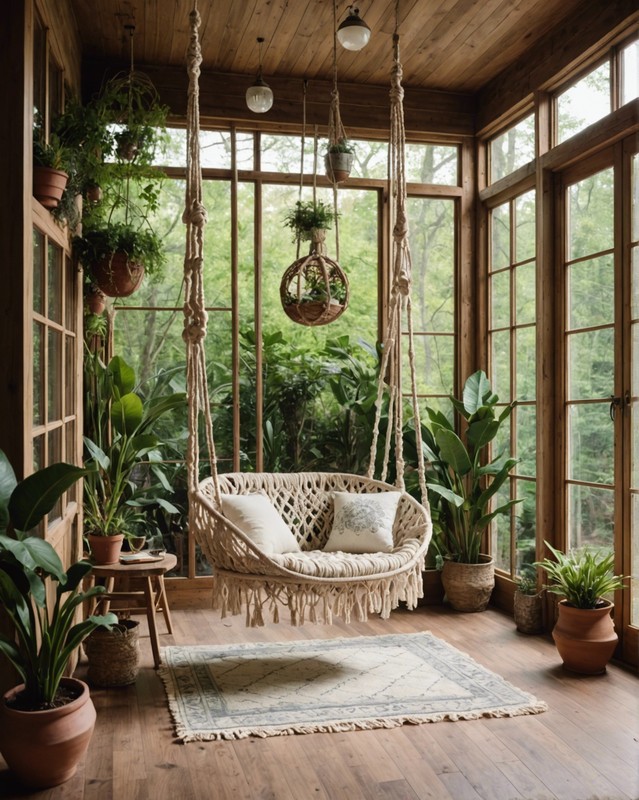 Bring an effortlessly bohemian vibe to your sunroom with a chic macramé swing. Crafted with intricate knotted cords, this swing offers a comfortable and stylish sanctuary for a cozy afternoon nap or a refreshing evening read.