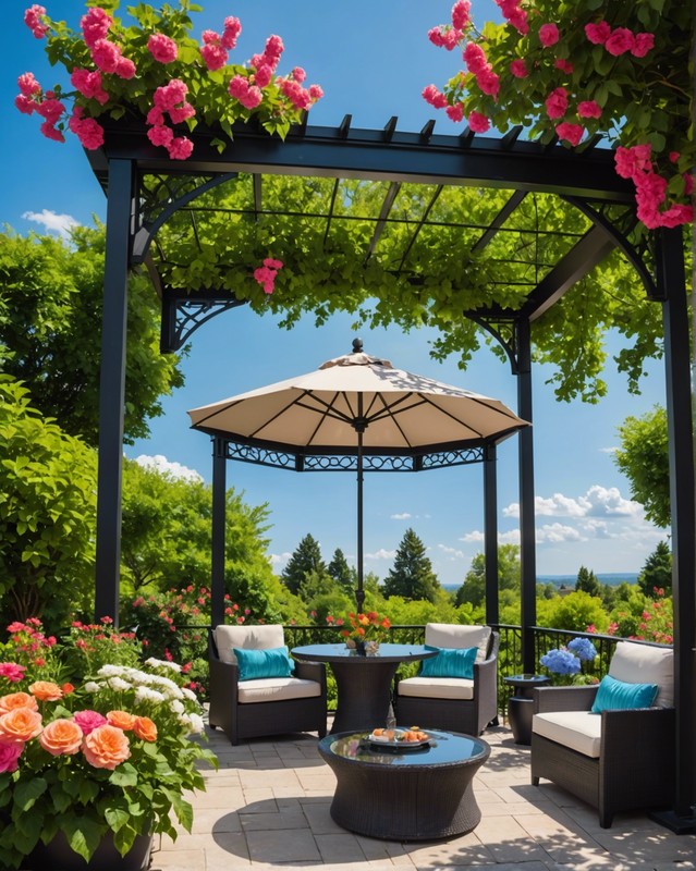 Cozy seating with pillows and throws is a must-have for a relaxing outdoor gazebo. It’s all about creating a comfortable and inviting atmosphere that makes you want to linger.