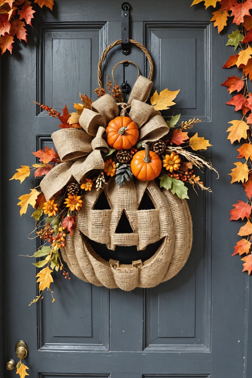 A pumpkin-shaped wreath door hanger is a beautiful and festive way to welcome the fall season. This DIY project typically starts with a wire or foam pumpkin shape, which is then decorated with artificial flowers, leaves, and ribbons in autumnal colors.