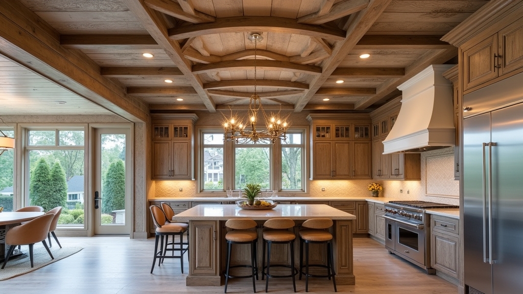 Rustic plank ceilings can bring a warm, inviting atmosphere to your kitchen, making it feel homier and more connected to nature. Here are some benefits of choosing this design: