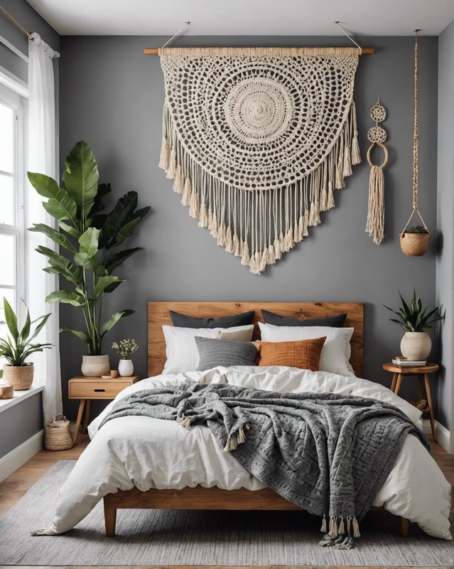 Add a touch of bohemian charm to your minimalist bedroom with macrame accents.
