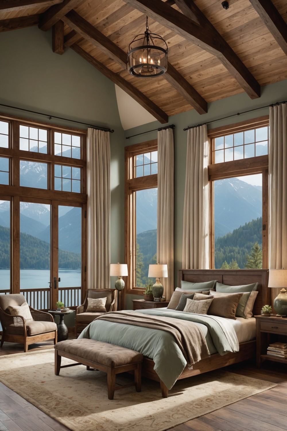These nature-inspired colors help to bring the outdoors in, creating a sense of harmony and balance in your mountain home bedroom.