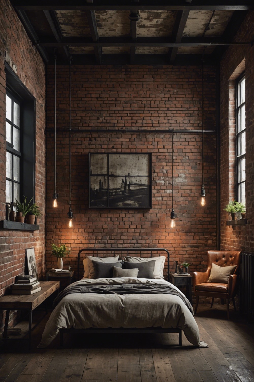 Think distressed brick walls, concrete floors, and metal beams left exposed, giving your bedroom a gritty, urban vibe.